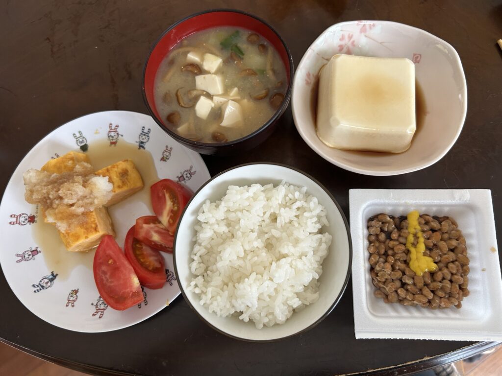 - 豆腐・納豆・卵など大豆&たんぱく質中心