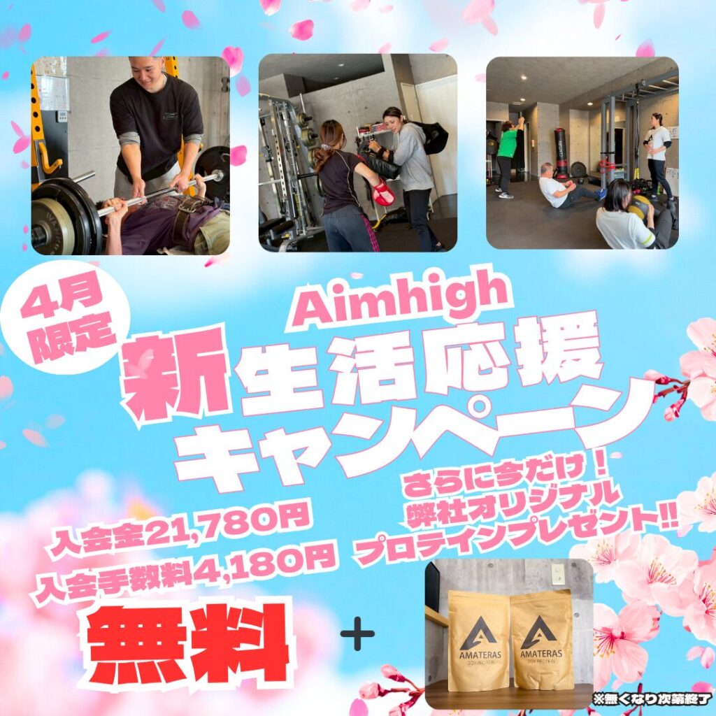 さらに今なら「新生活応援キャンペーン」も開催中!入会金&手数料無料に加え、弊社オリジナルプロテイン1袋プレゼントも!体験・見学予約随時受付中ですので、ぜひこの機会にお問い合わせください!